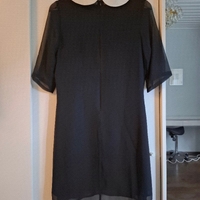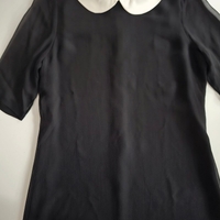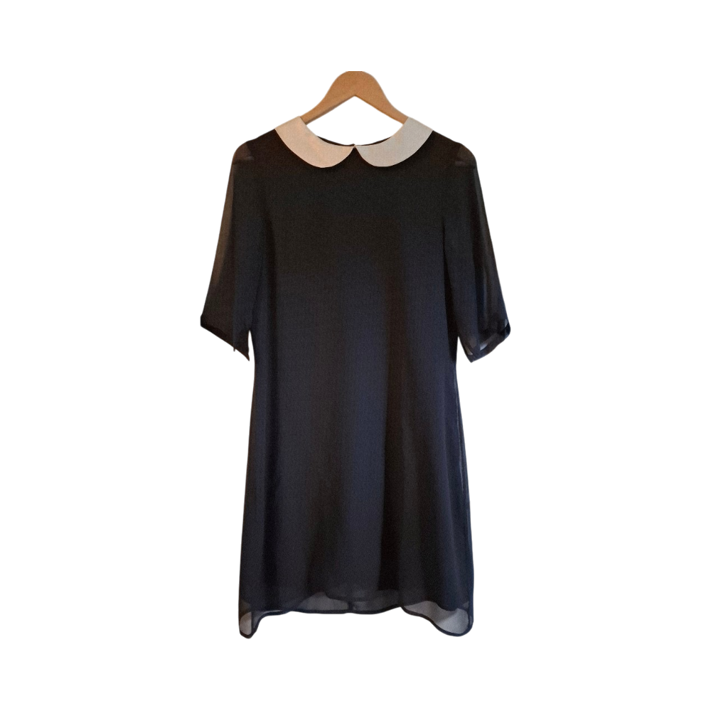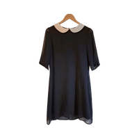 Black mid-sleeve dress with contrasting white peter pan collar.