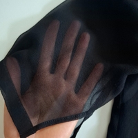 Ihanan kevyt mekko kaksinkertaisesta 100% silkistä. Hihat ohuehkoa ja läpikuultavat, muuten läpinäkymätön. Kangas ei jousta. Takana vetoketjusuljenta.