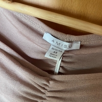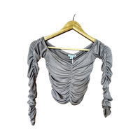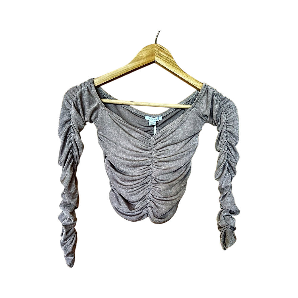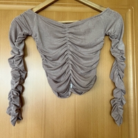 Beige, rypytetty, pitkähihainen naisten paita, off-shoulder koko XS. Käytetty pari kertaa