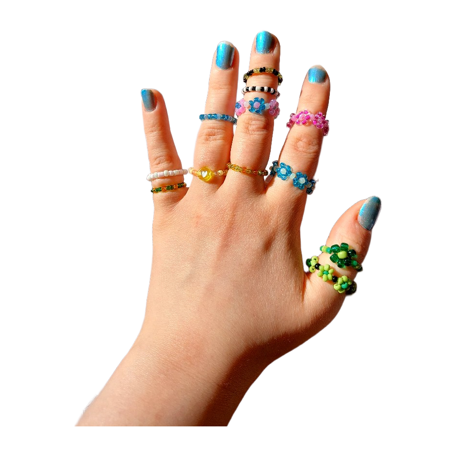 värikkäitä helmisormuksia 2-4e kappale. 🌸