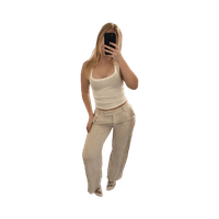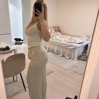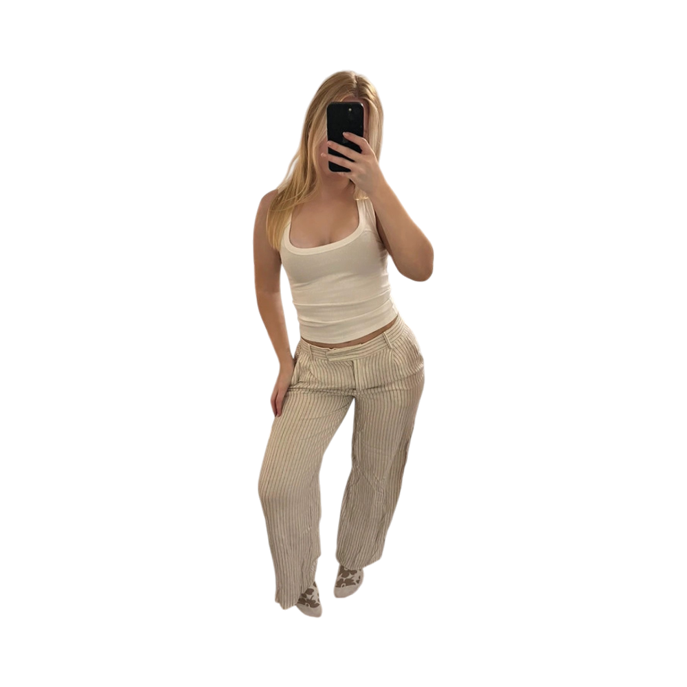Zaran beiget raidalliset pellavahousut, koko s, puvunhousun tyyliset taskut.