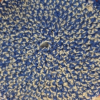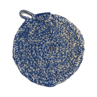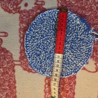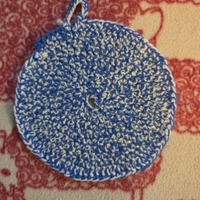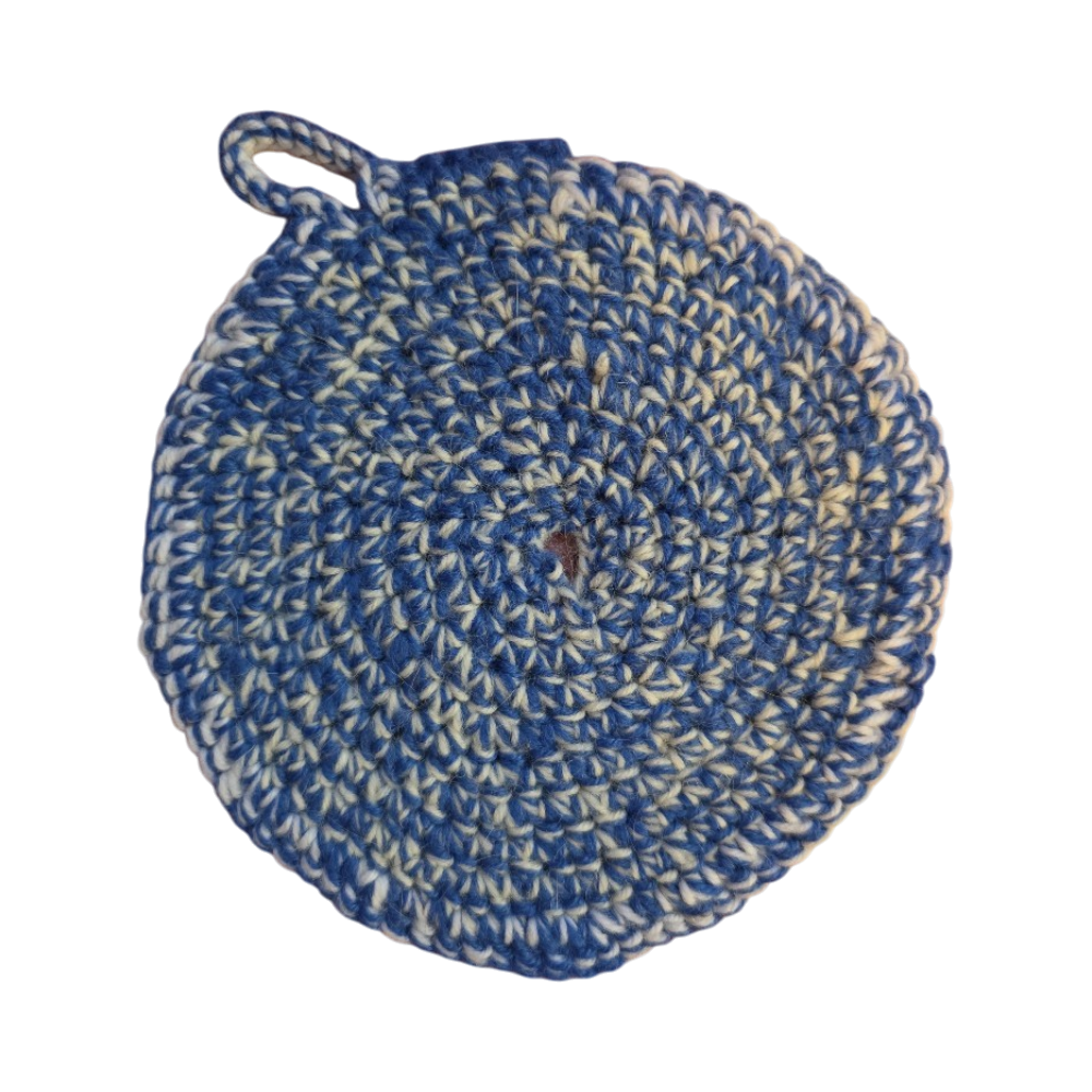 Käsin virkattu pyöreä pannunalunen, 15 cm halkaisija.