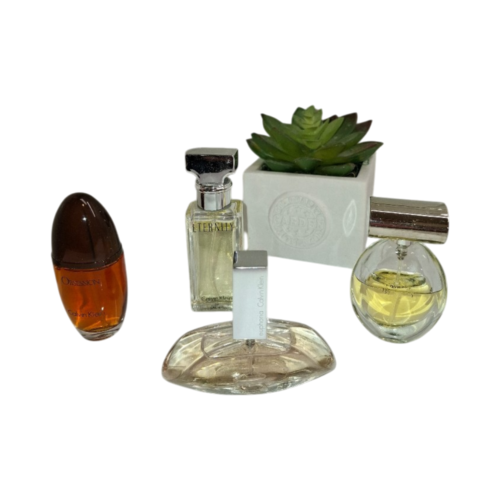 Useita pienikokoisia Calvin Klein -tuoksuja, käytettyjä. Kaksi lähes käyttämättömiä: Obsession ja Eternity.