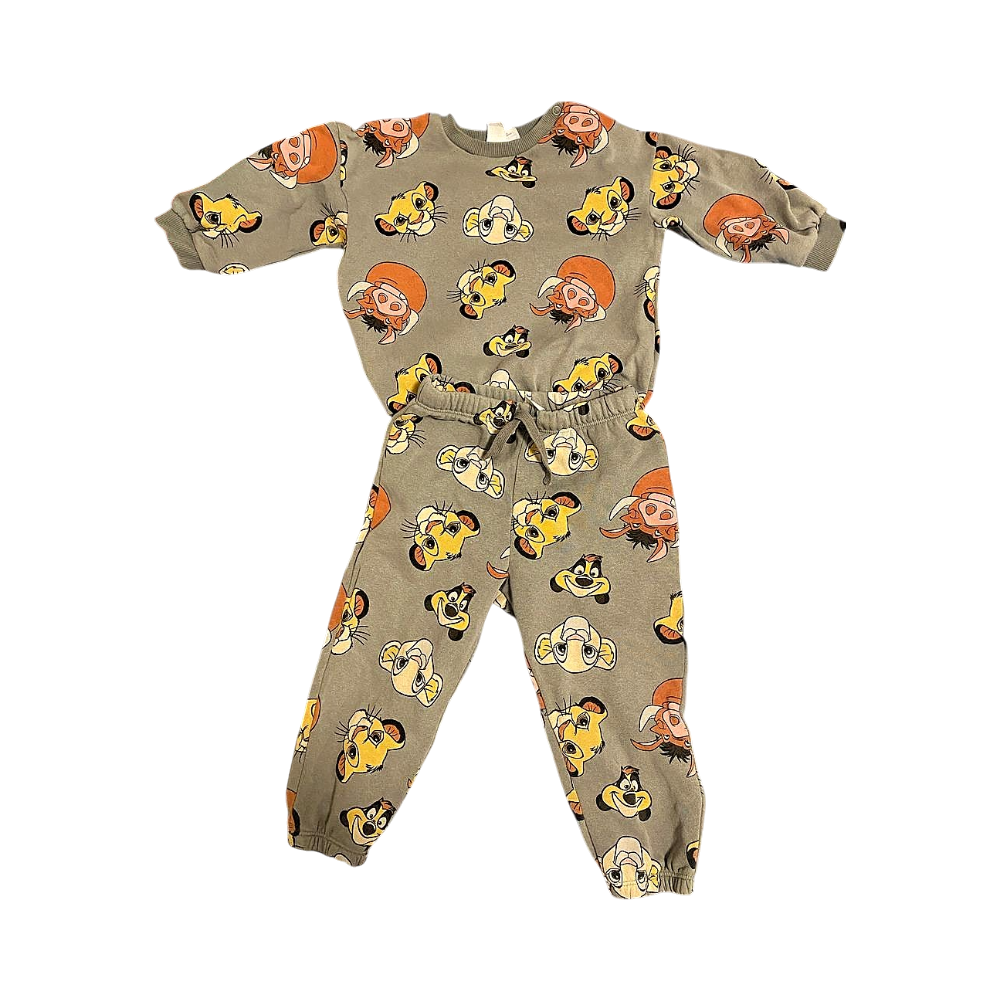 H&M 2-piece sweatshirt set in khaki green with The Lion King print