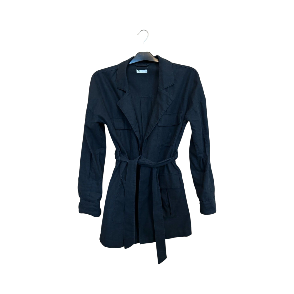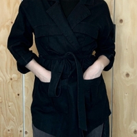 Cubuksen musta pellava takki/jakku. Vyötärönauha ja isot taskut. Hihoissa vaaleat napit.