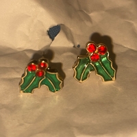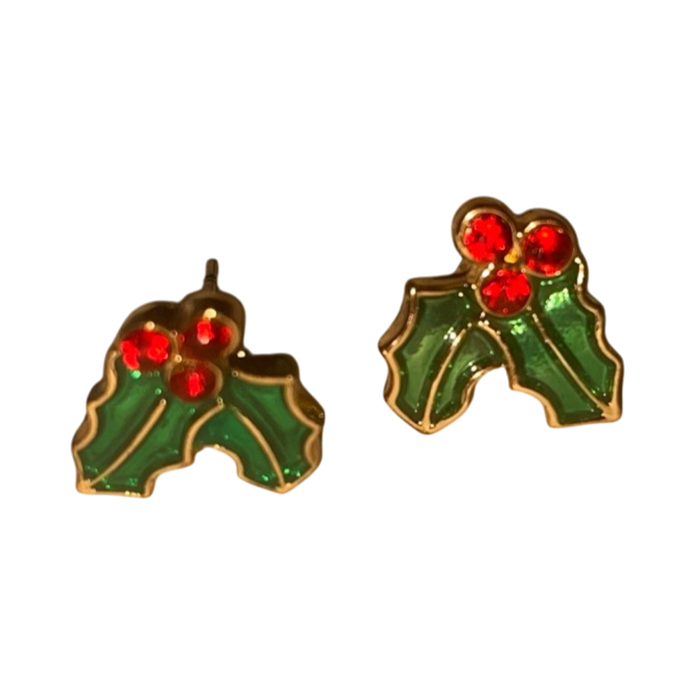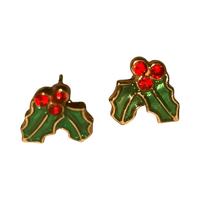 Pieni jouluteemaiset havunlehväkorvakorut, nappikiinnitys.