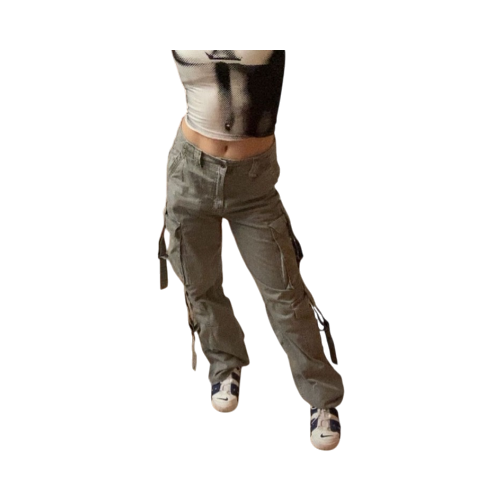 Väljät resoritaskulliset cargohousut, roikkuvilla nauhoilla. Hyvässä kunnossa.
