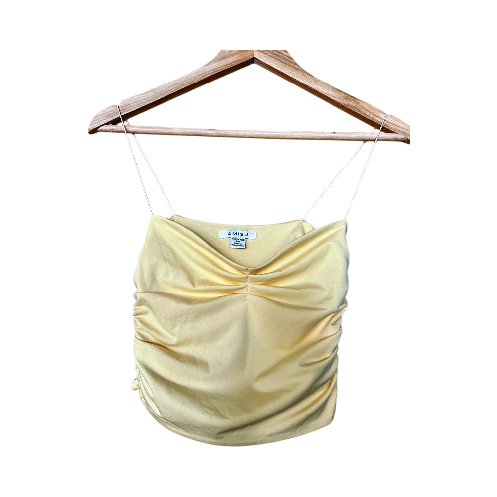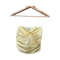 Keltainen hihaton toppi ohuilla olkaimilla, koko XS. Käytetty kerran-pari