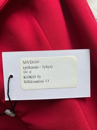 Punainen silkkisatiininen (valmistujais)mekko, kokoa 36. Käyttämätön, kerran sovitettu päälle, laput kiinni. Silkkisatiinia. Alkuperäinen hinta 99€.