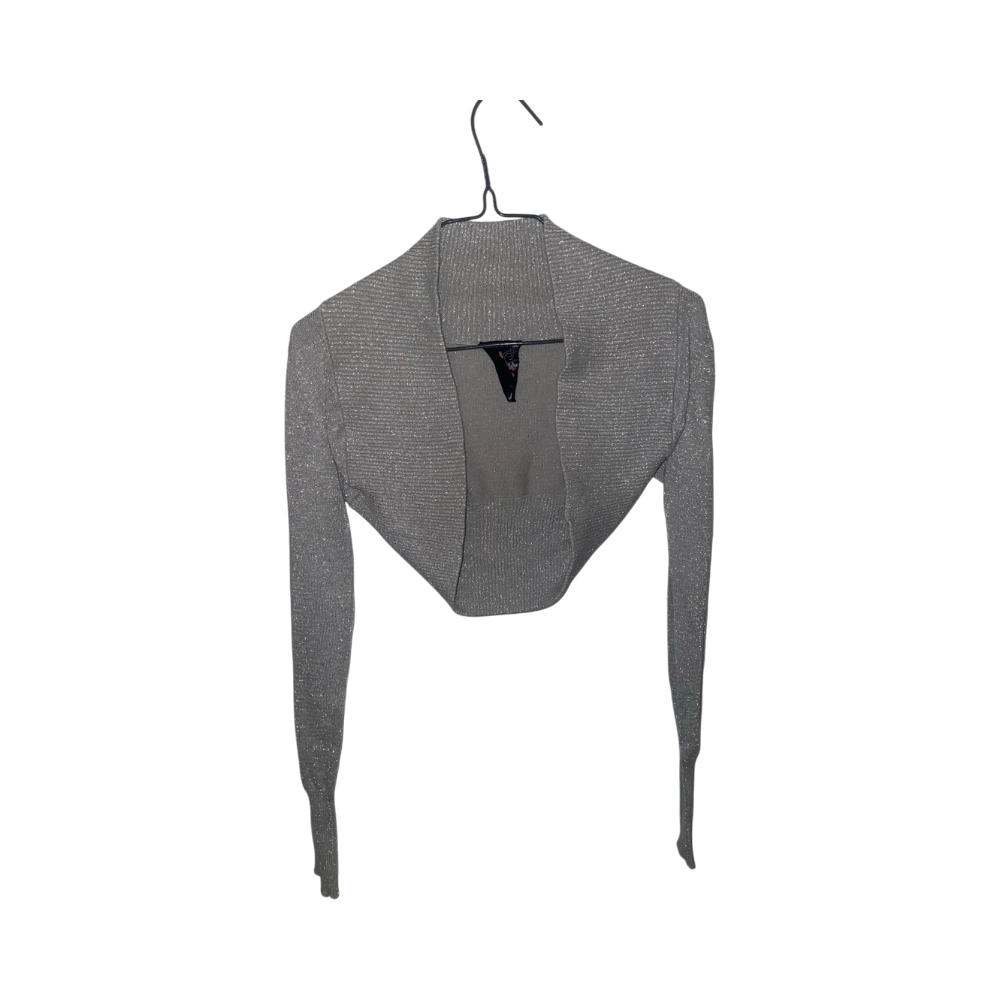 Lyhyt, kimaltava bolero pitsimäisellä neuloksella.