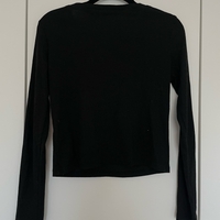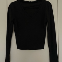Musta pitkähiha crop top syvällä V-pääntiellä ja ribbineuloksella. Joustava ja pehmeä materiaali. Täydellinen kerrospukeutumiseen tai sellaisenaan.