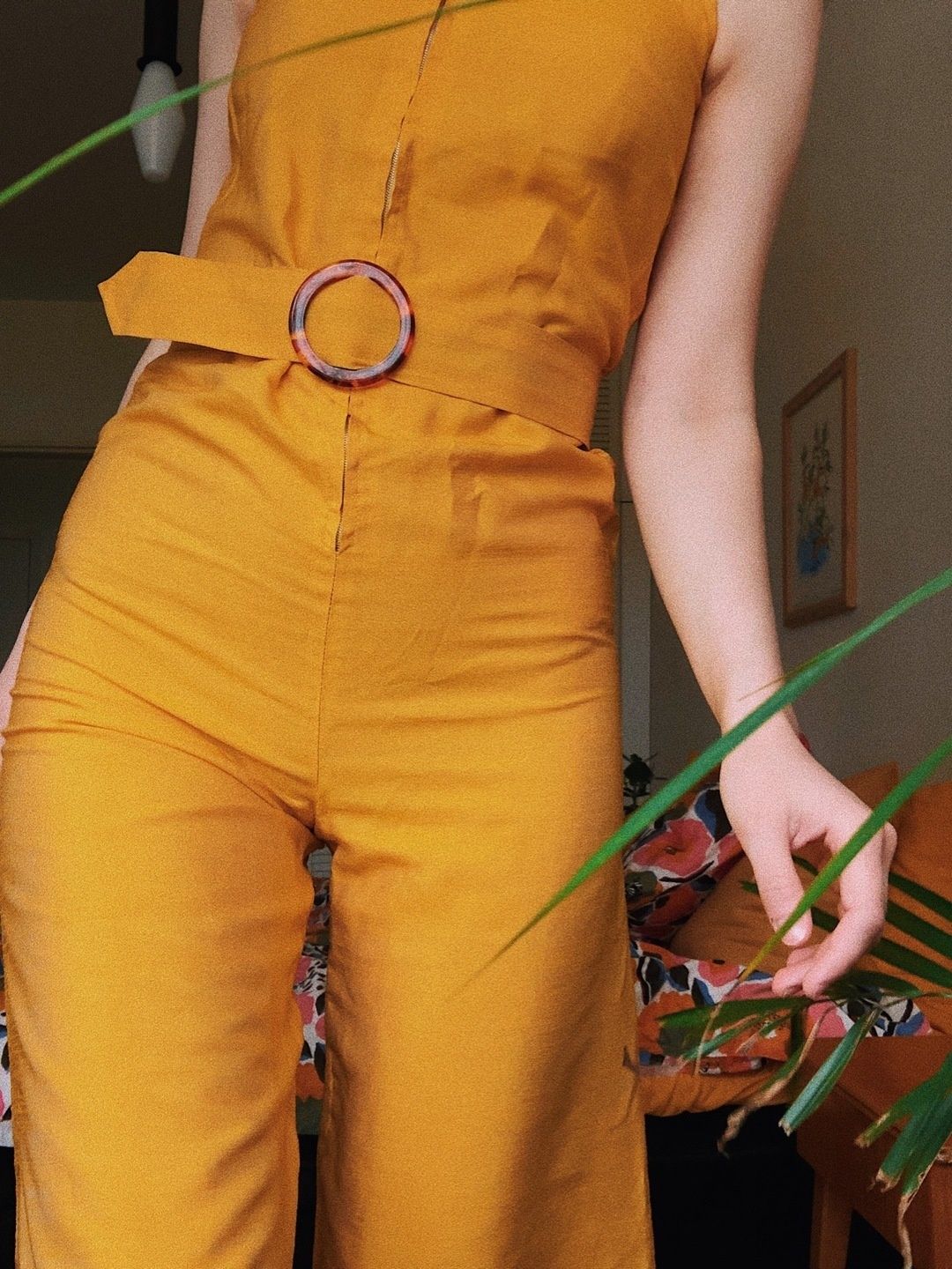 Maailman kaunein Tiina-merkkinen keltainen unelmahaalari 70- tai 60-luvulta ✨ Ostin tämän ehkä 2018 100€ fb-kirppikseltä, mutta se ei ikinä päässyt käyttöön. En ikinä raaskinut pukea sitä päälle ja vaikka olin super pienikokoinen, pelkäsin, että saumat ratkee istuessa 😂 Nyt ei mitään mahdollisuuksia saada päälle, mutta lisäsin kuvat haalarista mun päältä silloin joskus. Oikea sävy toisessa kuvassa. Super laadukas ja hyvin tehty, todella uniikki vintagevaate, johon et varmaan törmää toiste. Kaulus on korkea ja lahkeet ei ihan täyspitkät tai sitten on tarkoitettu vähän lyhyemmälle. Lahkeet on leveät ja vyötäröllä on matchaava keltainen vyö tortoise shell -tyylisellä pyöreellä soljella. Vetskari hyvässä kunnossa, tosiaan vähän käytetty. Säilytetty vuosia laatikossa kuivassa kaapissa. Kokolapussa lukee 38, mutta nykykoossa n. xs, todella pieni. Ei jousta, katso mitat kommenteissa. Materiaalista ei tietoa, luultavasti jotain keinokuitusekoitetta. Kangas vähän kiiltäväpintaisen näköistä.