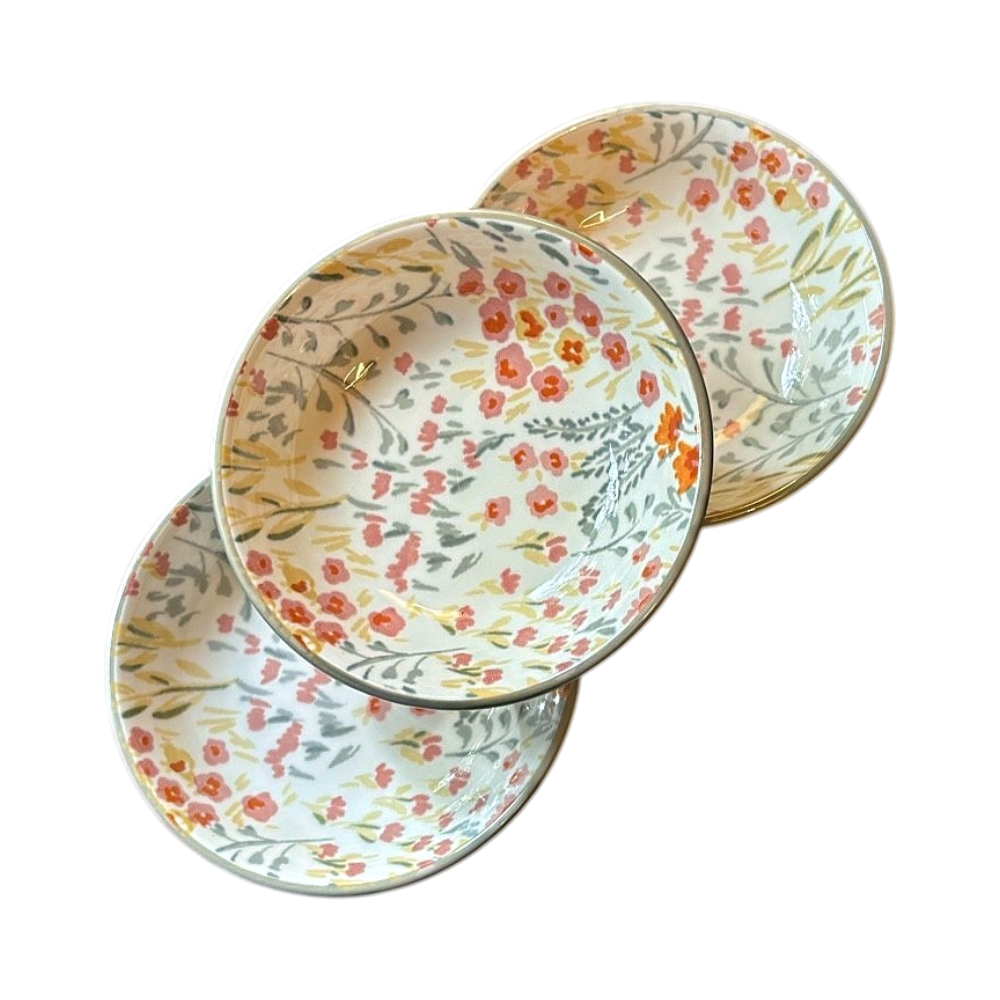 Pieni kulho, jossa vaaleanpunainen ja oranssi kukkakuosi, 3 kpl setti