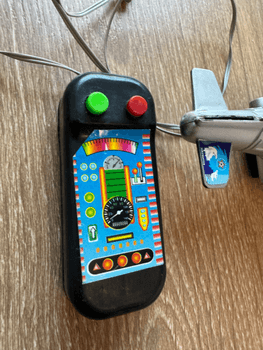 Ei tietoa toimiiko, testasin (mahdollisesti) sisällä olevalla patterilla ja ei reaktiota, en lähtenyt avaamaan lelua ja tarkastamaan onko sisällä paristoa tai missä kunnossa se on. Lelu on peräisin omasta lapsuudestani, joten sisällä mahdollisesti oleva paristo on ainakin varmasti vaihtokunnossa.