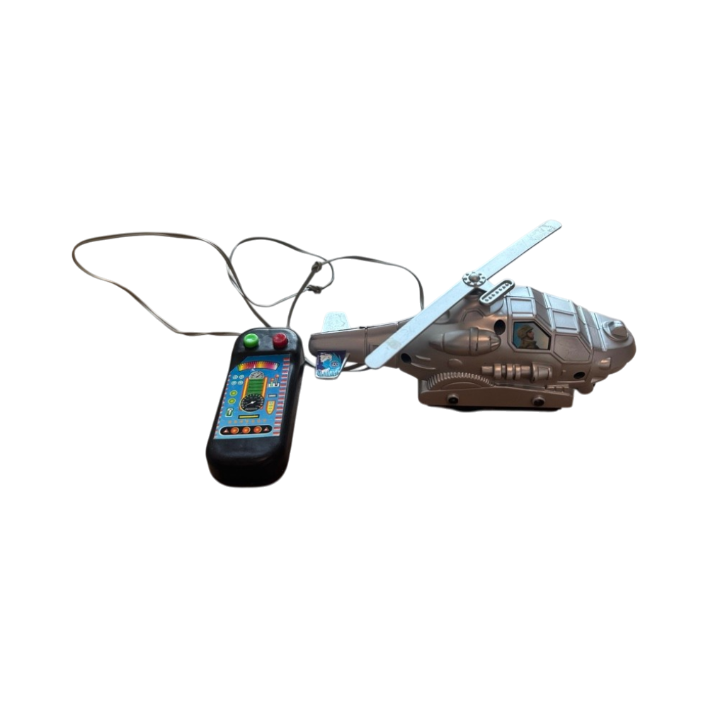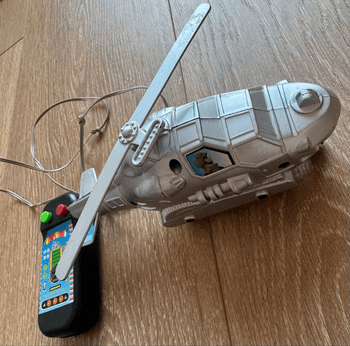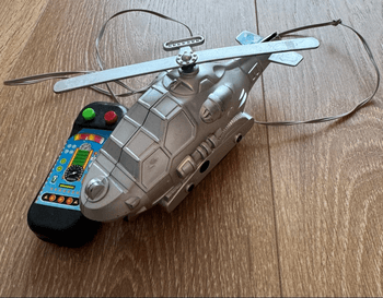 Myydään kuvienmukaisessa kunnossa oleva, monet leikit nähnyt lelu helikopteri.