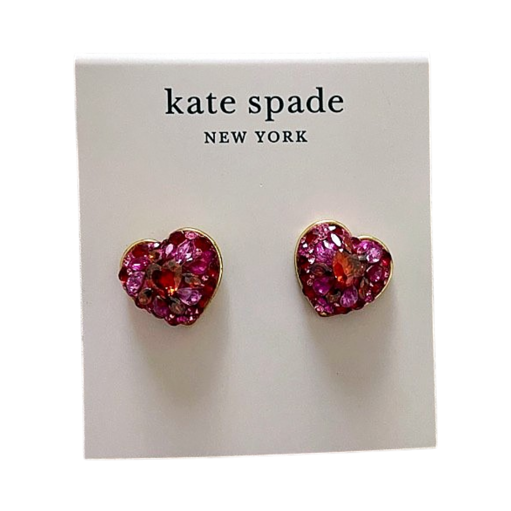 Kate Spade Something Sparkly heart clay pave stud earrings.