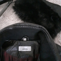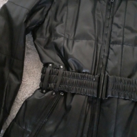 Takissa irrotettava vyö, 2 taskua edessä sekä erillinen musta tekoturkiskaulus. Se kiinnitetään halutessa vetoketjuilla kaulukseen.