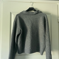 harmaa neulepaita kauluksella