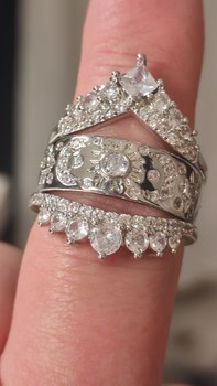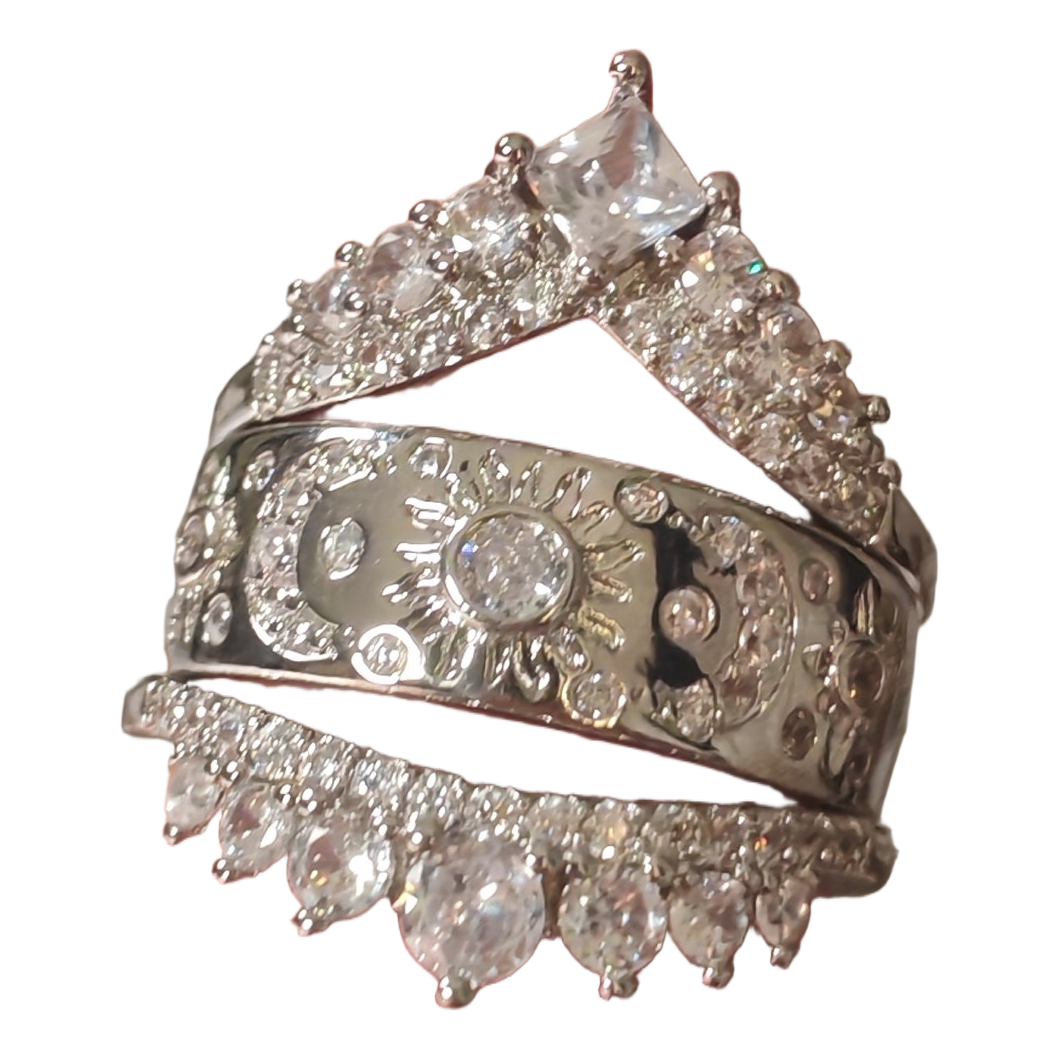Kolmen sormuksen setti. Koristeellinen muotoilu, jossa kiviä.3kpl 19mm