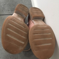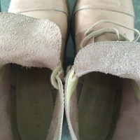 Ten Pointsin vuorettomat Pandora-nauhanilkkurit. Pohjan kärkiosassa nähtävissä pientä kulumaa (näkyy kuvassa 3). Tarkasti katsottuna myös kenkien nahkaosassa näkyy muutama kulutusjälki. HUOM! Itselleni, joka käyttää kengänkokoa 37, nämä ovat LIIAN ISOT, eivätkä liian pienet, kuten myynti-ilmoitus itsepintaisesti väittää.