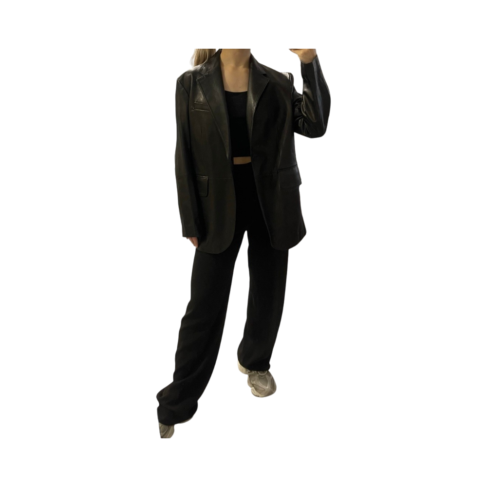 Arketin musta aitoa nahkaa oleva blazer. Myydään Arketin nettikaupassa nimellä Oversized Leather Blazer. Käytetty vain pari kertaa, joten uudenveroisessa kunnossa. Ovh 359€.