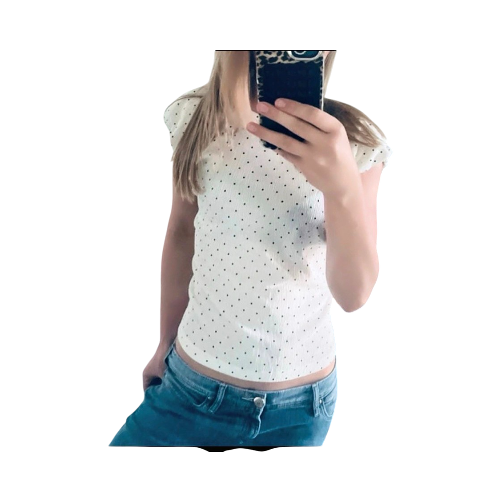 Polka dot paita muuten hyvässä kunnossa paitsi oikean puolen olkapään kohdassa on reikä (kuva 2)💞😊
