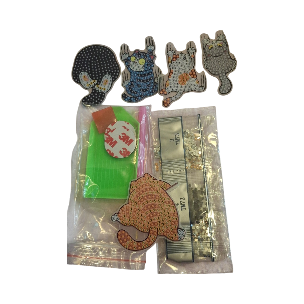 Diamond painting -kissamagneetit 5kpl. Kaikki tarvittava mukana.