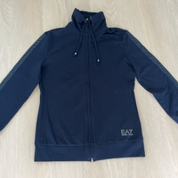Emporio Armani EA7 tummansininen oloasu, vetoketjullinen takki ja housut, joissa strassikoristeet. Kai-kai 46 cm, olka-helma 60 cm, lahkeen sisäpituus 80 cm. Housuja käytetty pari kertaa, takkia ei ollenkaan. Materiaali 95% puuvilla, 5 % elastaani.