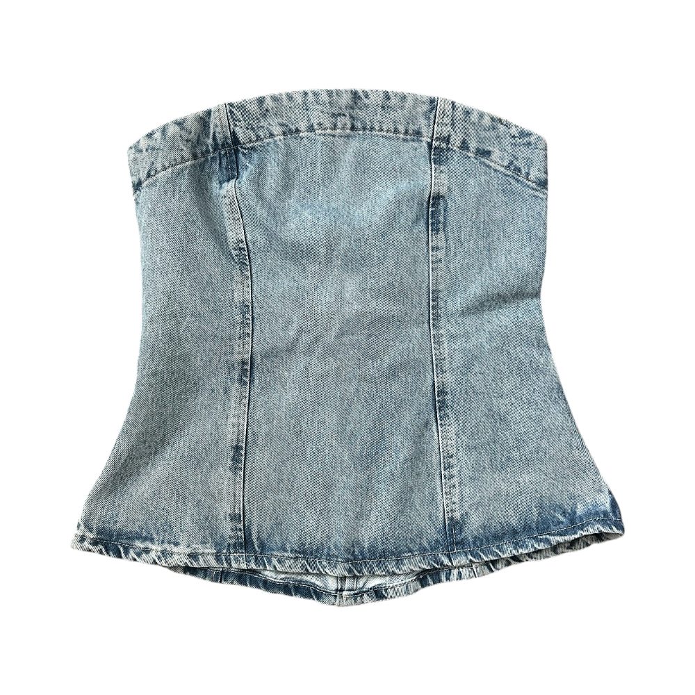 Ihana farkku tuubitoppi🤩 käytetty vain kerran, koska itselle vähän liian iso! Selässä on vetoketju ja farkku on jämäkkää materiaalia joka pysyy hyvin päällä