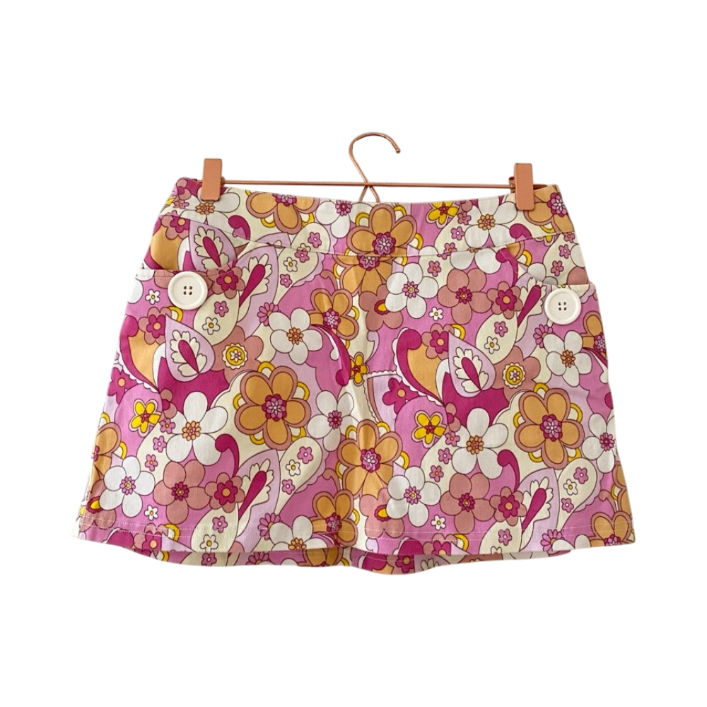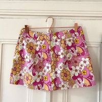 Värikäs kukkakuvioitu vintage Only-merkkinen minihame. Kokolapussa 40, Pienehkö koko, mielestäni vastaa M-kokoa. Tästä esim. Halloweeniksi barbie-asuun tms.