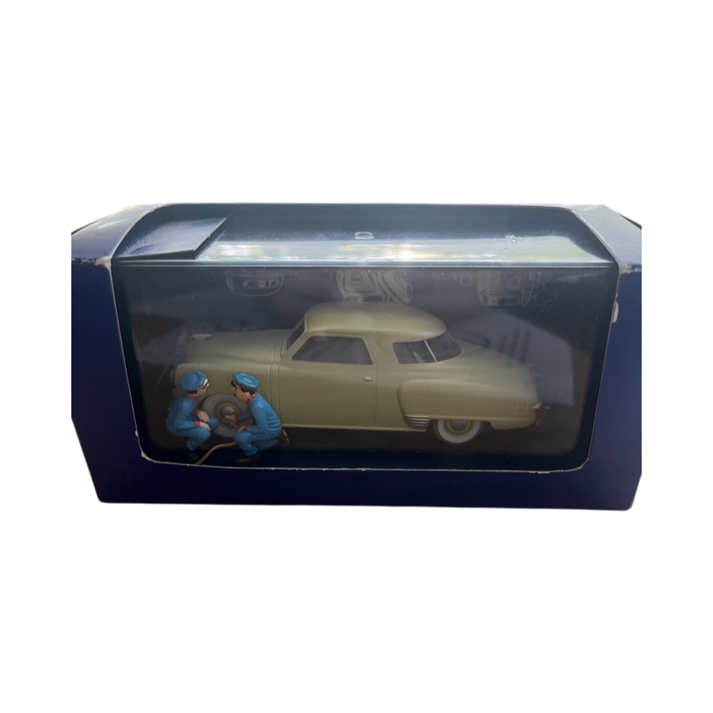 Kokoelmafiguuri autolla ja suojakotelolla.