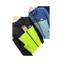 The North Face takit. Vihreä M kokonen, Sininen L. Molemmat mieheille, vaikka myös naisillekin sopivat, mietin.