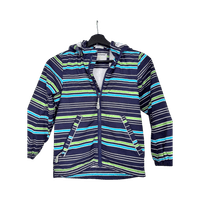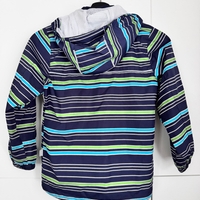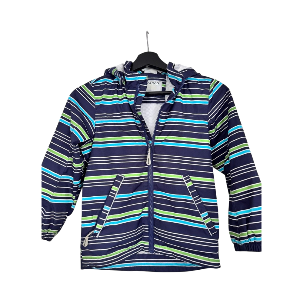 Kevyt lasten tuulitakki hupulla, vetoketjulliset taskut. Koko 122