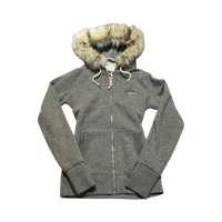 Harmaa huppari irrotettavalla hupun karvareunuksella🪩 Kokoa XS, tekoturkisreunus kiinni metallisilla neppareilla. Huppari siistissä kunnossa, juuri huollettu!
