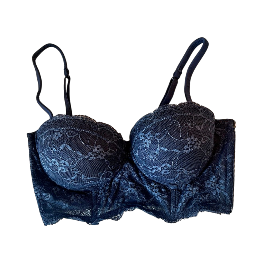 Padded longline lace bra, adjustable straps, underwire support