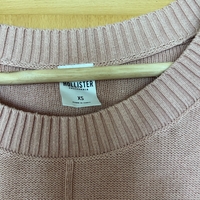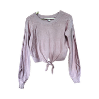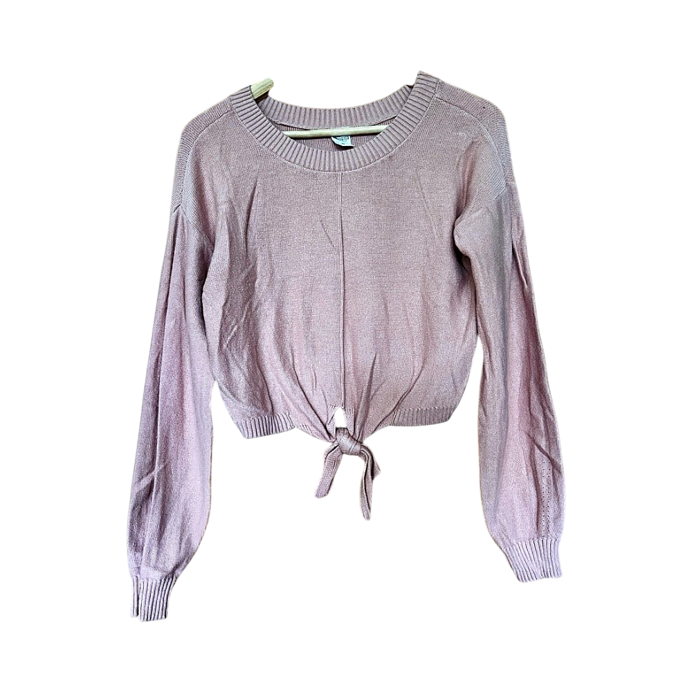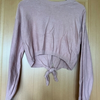 Vaaleanpunainen neulepusero, jossa solmuvyötärö, koko XS.