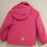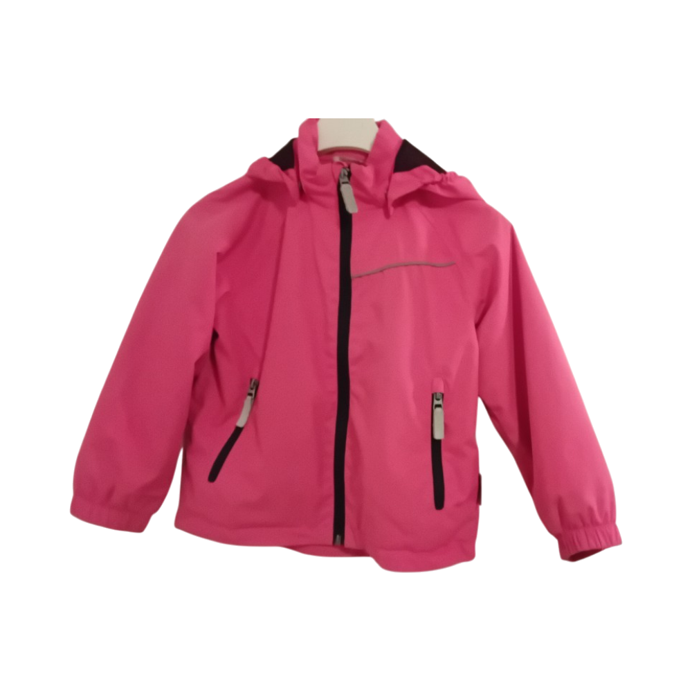 Lassie tuulitakki irrotettavalla hupulla. Perustakki, hihansuissa vähän tummentumaa. Koko reilu 104cm.