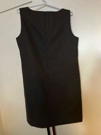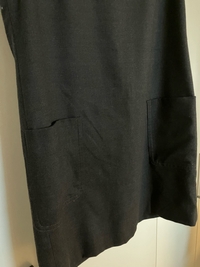 Yksinkertainen musta hihaton villamekko, koko 42, merkki Marc O’Polo. Edessä taskut, takana vetoketju, erillinen vuori.