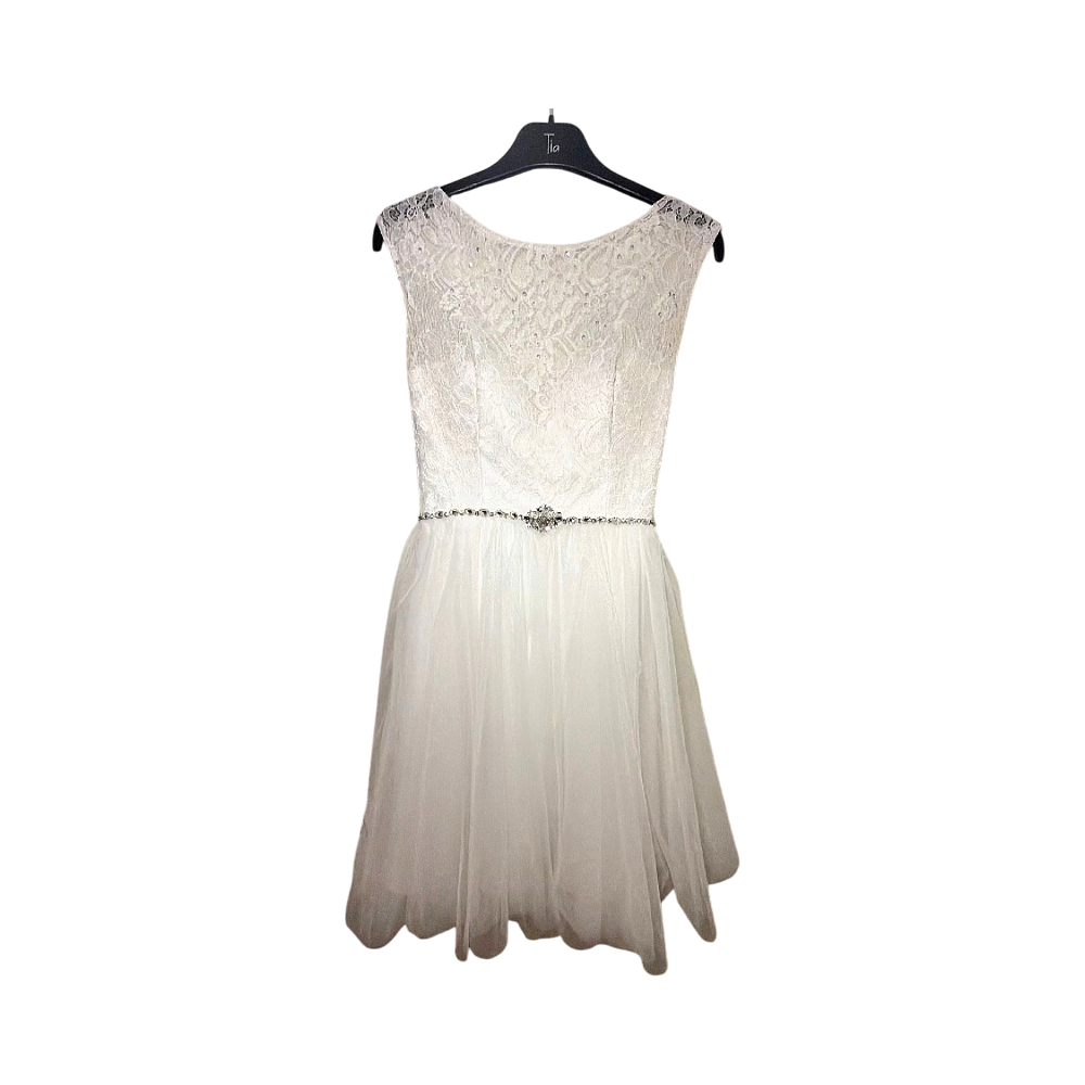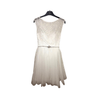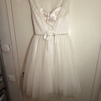 Zazabellan rippi-/juhlamekko, käytetty kerran eli kuin uusi. Olkapäissä sentin lyhennykset jotka on huomaamattomat ja niitä pystyy helposti myös pidentää sentin.
