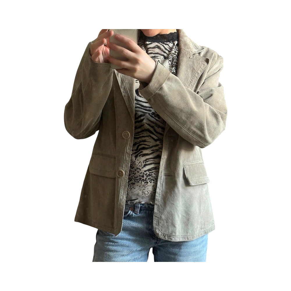 beige mokkatakki, koko 42. päällä xs/s kokoisella. sanoisin että s.