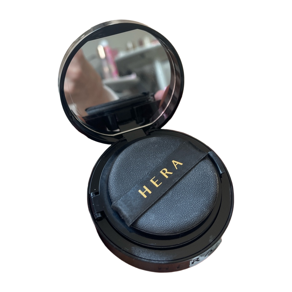 Black compact cushion foundation with mirror and applicator puff