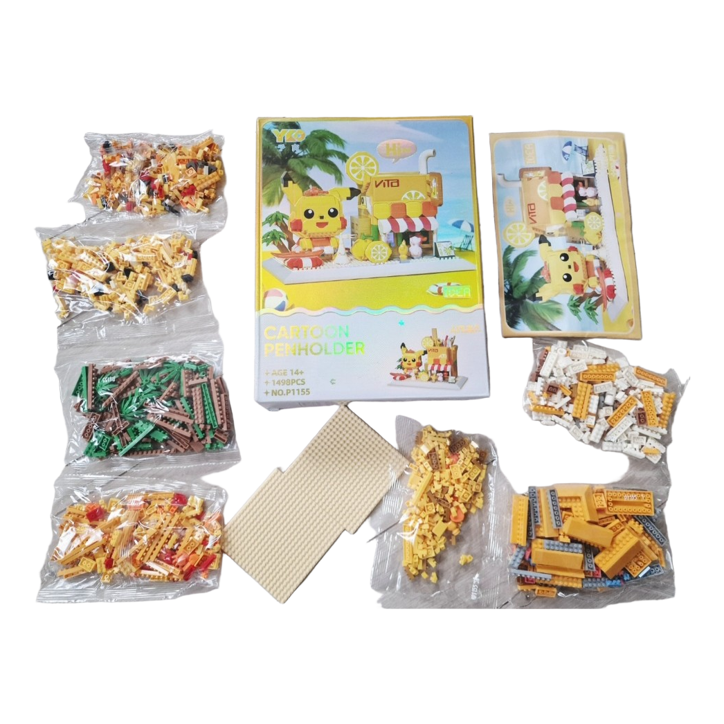 Pikachu-themed construction set with instructions. The set consists of 1498 pieces, packed in separate bags.