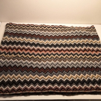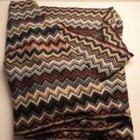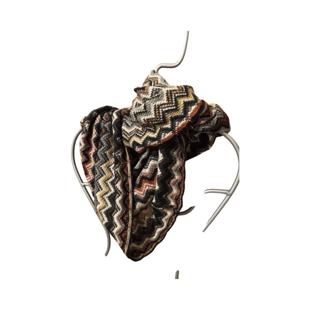 Iso neulottu tuubimallinen huivi, monivärinen kuvio, villaa. Siisti kunto.