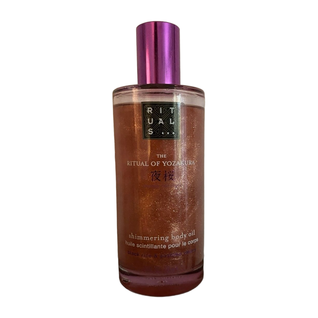 Ritual of Yozakura 100ml kimaltava öljy iholle. Ihana tuoksu. Limited edition tuote, ei enää saatavilla. Kuvasta näkyy käyttöaste. Säilytetty asianmukaisesti, avattu toukokuussa, kaksi kertaa käytetty.