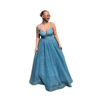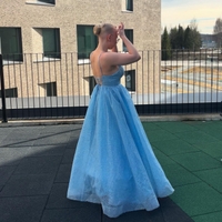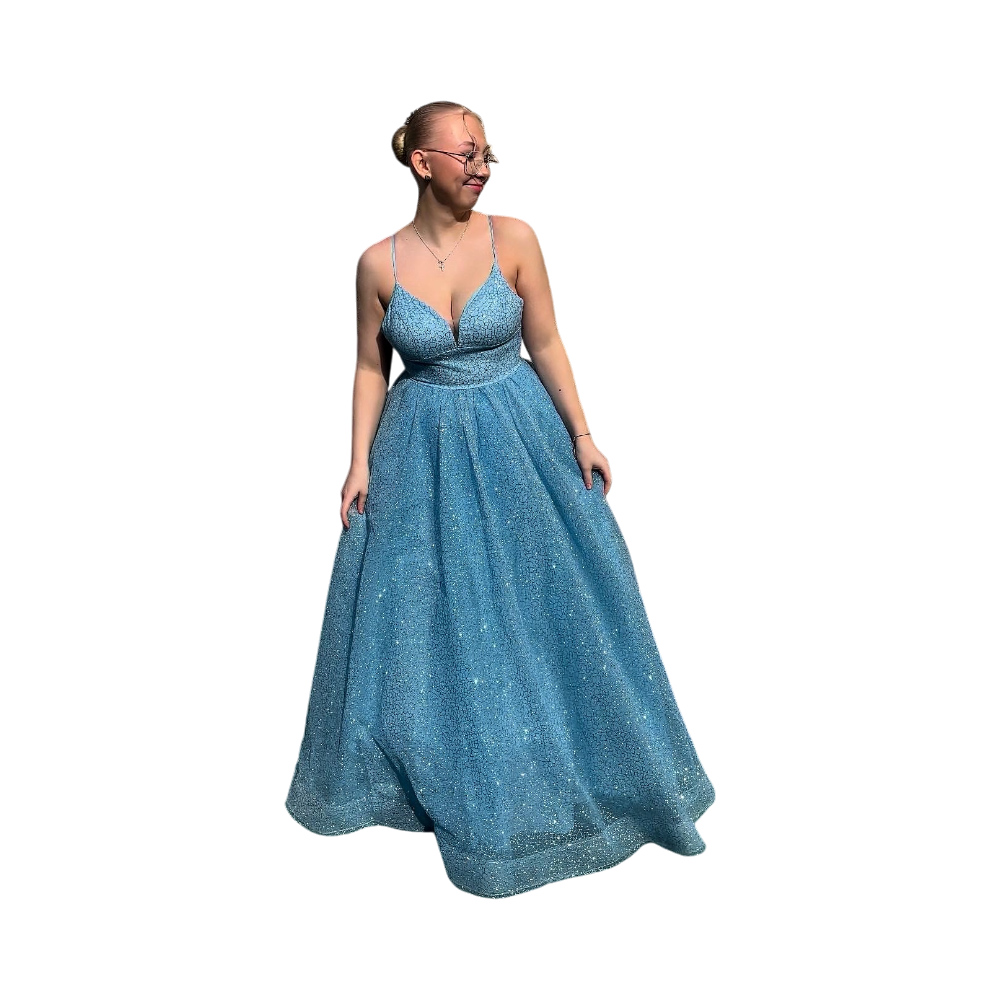 Vaaleansininen s koon mekko lyhennetty 165 cm pituiselle. Mukana tulee myös vannehame XS koko