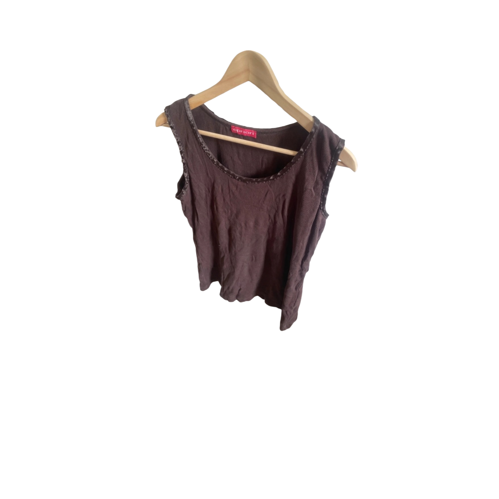 Yksinkertainen ruskea ribbikangas toppi, käytetty. Apriori merkkiä.