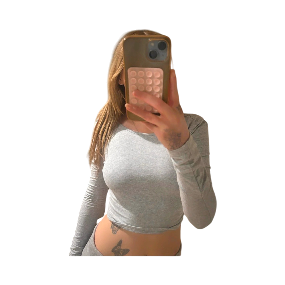 Light grey open back long sleeve crop top