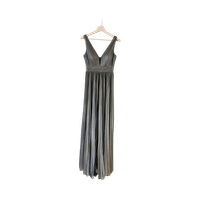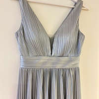 Satiininen hopea pitkä/maxi juhlamekko, koko S.