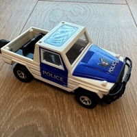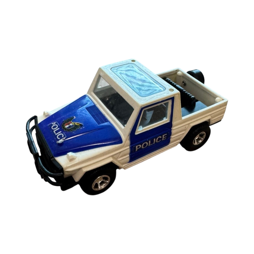 Pienoismalli esittää todennäköisesti G-sarjan Mercedes Benz -merkkistä poliisiautoa. Leluauto on 90-luvun lopulta.