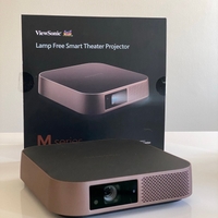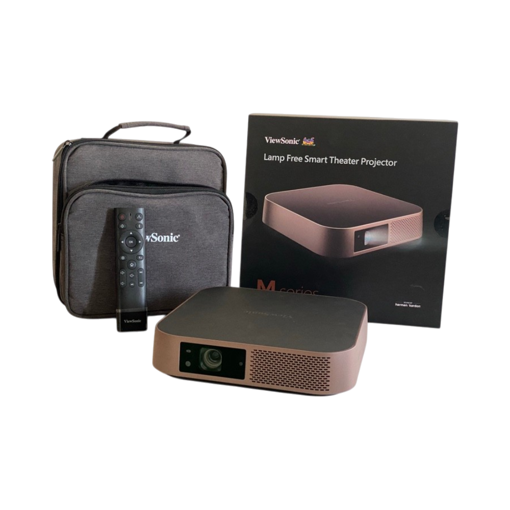 ViewSonic M2 on kompakti pieni projektori, joka sopii hyvin paljon liikkuvalle käyttäjälle. Projektorissa on mukavasti peräti 1200 lumenin valoteho LED valonlähteellä. Projektorin maksimi Full HD resoluutio on riittävä isommallekin kuvakoolle heijastettuna. Projektorista löytyy langaton peilaus mobiililaitteesta tai voit myös esittää esityksesi USB-muistista tai Micro-SD muistikortilta.